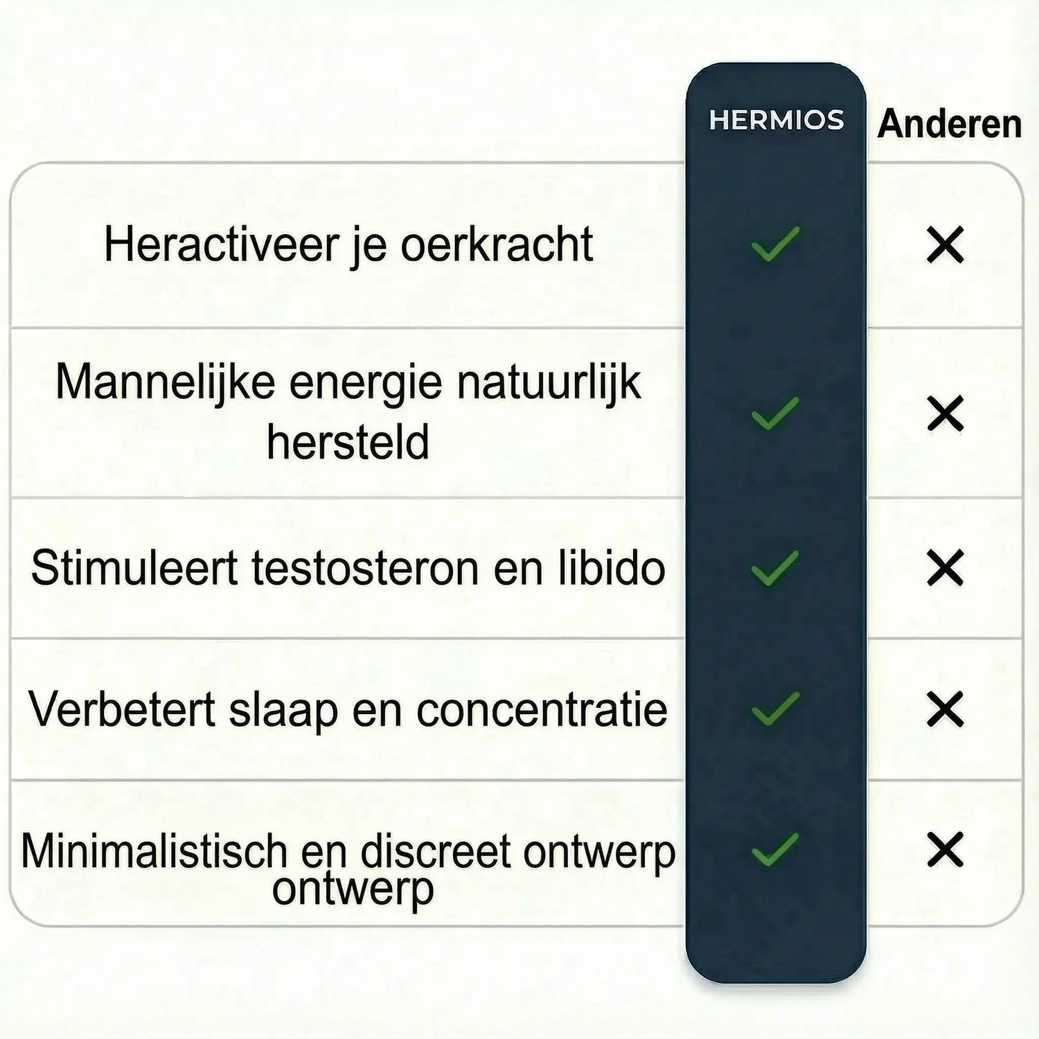 Waar supplementen pieken gevolgd door dalen veroorzaken, levert Hermios constante magnetische stimulatie. Mannen melden een scherpere focus, langdurige energie, een verhoogd libido en hernieuwd mannelijk zelfvertrouwen.